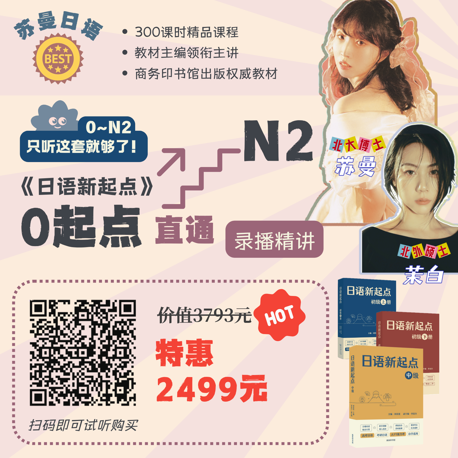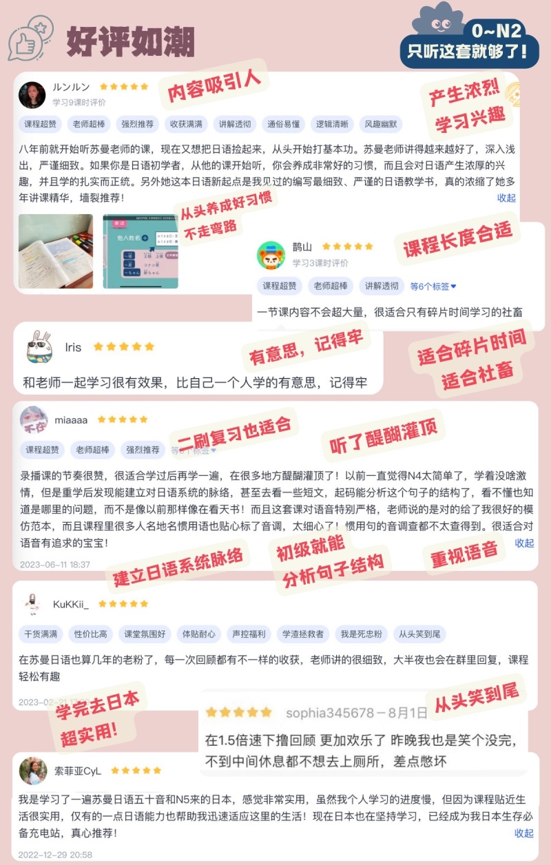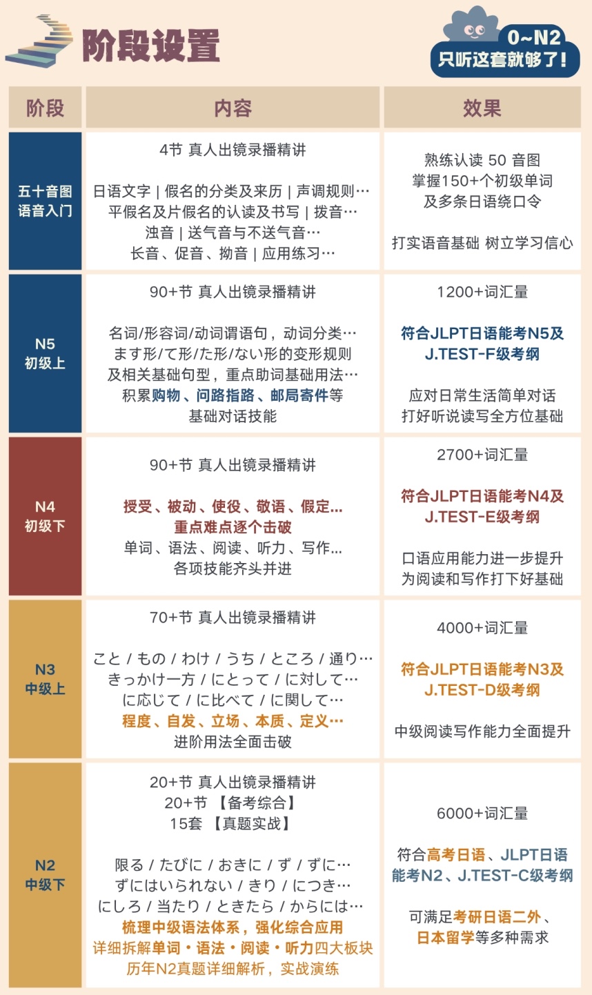 性价比超高的纯录播讲解课 ~ 从零基础直接学到N2!