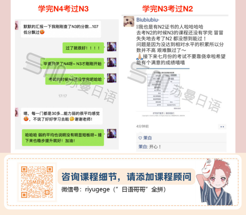 添加课程顾问微信:riyugege(“日语哥哥”全拼)了解详情。