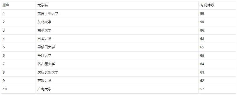 日本大学专利数排行